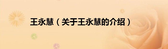 大家好,小都来为大家解答以上的问题。王永慧,关于王永慧的介绍很多人还不知道,现在让我们一起来看看吧!