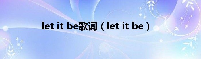 关于let it be歌词,let it be这个很多人还不知道,今天菲菲来为大家解答以上的问题,现在让我们一起来看看吧!