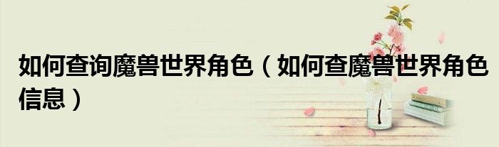 关于如何查询魔兽世界角色,如何查魔兽世界角色信息这个很多人还不知道,今天菲菲来为大家解答以上的问题,现在让我们一起来看看吧!
