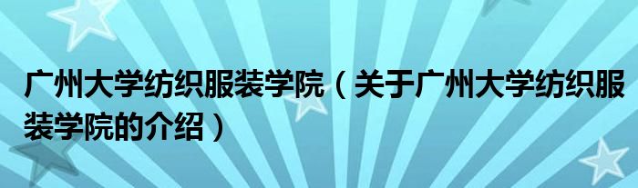 大家好,小都来为大家解答以上的问题。广州大学纺织服装学院,关于广州大学纺织服装学院的介绍很多人还不知道,现在让我们一起来看看吧!