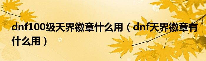 dnf100级天界徽章什么用(dnf天界徽章有什么用)