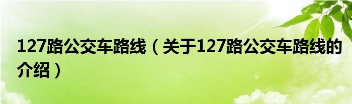 大家好,小都来为大家解答以上的问题。127路公交车路线,关于127路公交车路线的介绍很多人还不知道,现在让我们一起来看看吧!