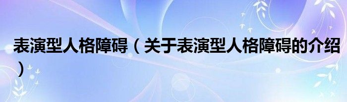 表演型人格障碍(关于表演型人格障碍的介绍)