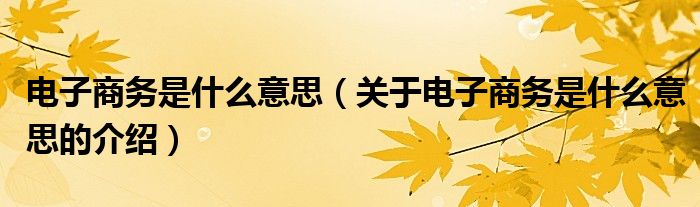 大家好,小都来为大家解答以上的问题。电子商务是什么意思,关于电子商务是什么意思的介绍很多人还不知道,现在让我们一起来看看吧!