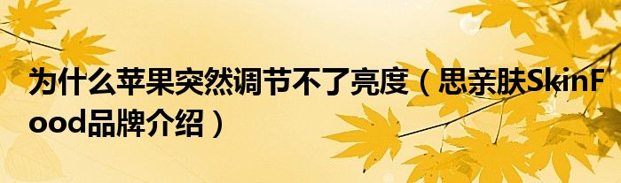 大家好,小源来为大家解答以上问题。为什么苹果突然调节不了亮度,思亲肤SkinFood品牌介绍很多人还不知道,现在让我们一起来看看吧!
