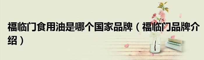 大家好,小源来为大家解答以上问题。福临门食用油是哪个国家品牌,福临门品牌介绍很多人还不知道,现在让我们一起来看看吧!