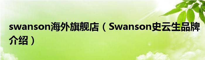 大家好,小源来为大家解答以上问题。swanson海外旗舰店,Swanson史云生品牌介绍很多人还不知道,现在让我们一起来看看吧!