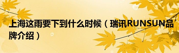 上海这雨要下到什么时候(瑞讯RUNSUN品牌介绍)