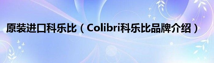 大家好,小源来为大家解答以上问题。原装进口科乐比,Colibri科乐比品牌介绍很多人还不知道,现在让我们一起来看看吧!