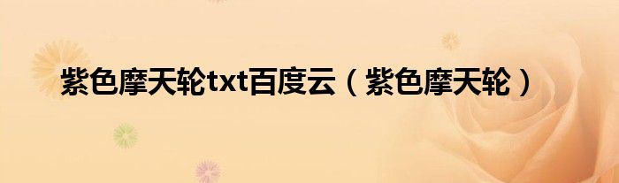 紫色摩天轮txt百度云,紫色摩天轮这个很多人还不知道,小飞来为大家解答以上的问题。现在让我们一起来看看吧!