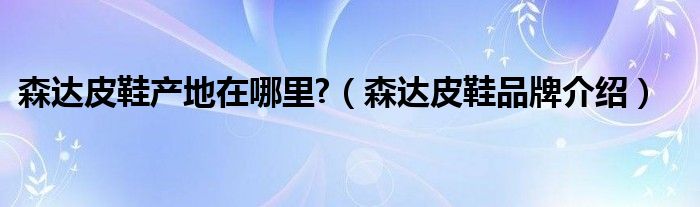 大家好,小源来为大家解答以上问题。森达皮鞋产地在哪里?,森达皮鞋品牌介绍很多人还不知道,现在让我们一起来看看吧!