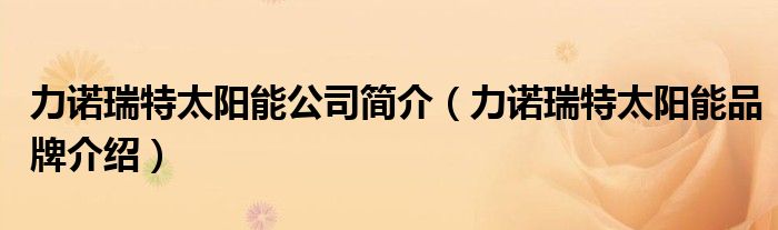 大家好,小源来为大家解答以上问题。力诺瑞特太阳能公司简介,力诺瑞特太阳能品牌介绍很多人还不知道,现在让我们一起来看看吧!
