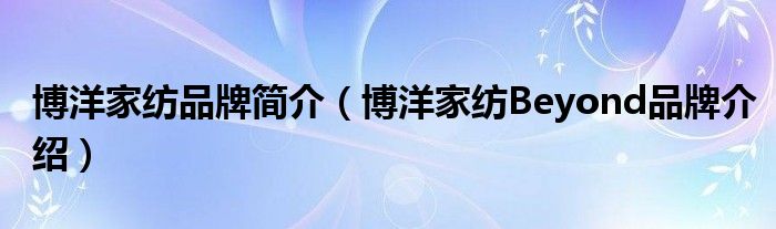 大家好,小源来为大家解答以上问题。博洋家纺品牌简介,博洋家纺Beyond品牌介绍很多人还不知道,现在让我们一起来看看吧!