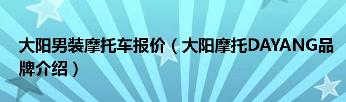大家好,小源来为大家解答以上问题。大阳男装摩托车报价,大阳摩托DAYANG品牌介绍很多人还不知道,现在让我们一起来看看吧!