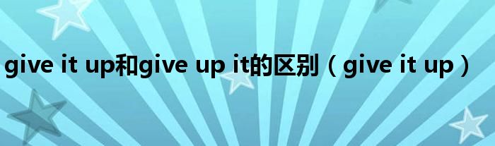 大家好,小飞来为大家解答以上的问题。give it up和give up it的区别,give it up这个很多人还不知道,现在让我们一起来看看吧!