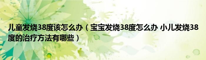 大家好,linda来为大家解答以上的问题。儿童发烧38度该怎么办,宝宝发烧38度怎么办 小儿发烧38度的治疗方法有哪些很多人还不知道,现在让我们一起来看看吧!