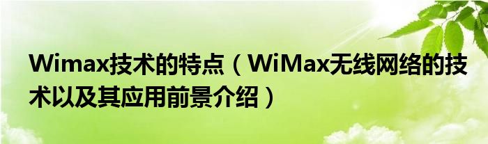 大家好,今天小悦来为大家解答以上问题。Wimax技术的特点,WiMax无线网络的技术以及其应用前景介绍很多人还不知道,现在让我们一起来看看吧!