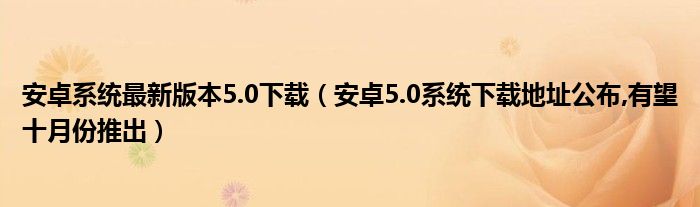 大家好,今天小悦来为大家解答以上问题。安卓系统最新版本5.0下载,安卓5.0系统下载地址公布,有望十月份推出很多人还不知道,现在让我们一起来看看吧!