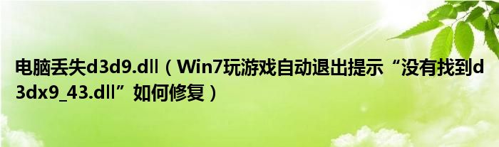 大家好,今天小悦来为大家解答以上问题。电脑丢失d3d9.dll,Win7玩游戏自动退出提示“没有找到d3dx9_43.dll”如何修复很多人还不知道,现在让我们一起来看看吧!
