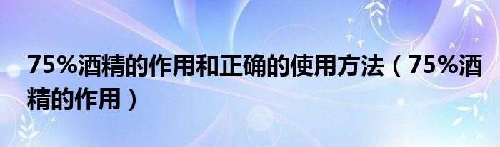 75%酒精的作用和正确的使用方法(75%酒精的作用)