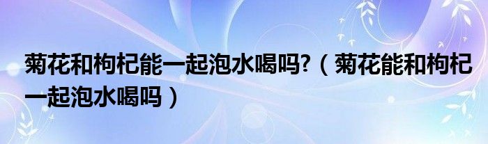 大家好,linda来为大家解答以上的问题。菊花和枸杞能一起泡水喝吗?,菊花能和枸杞一起泡水喝吗很多人还不知道,现在让我们一起来看看吧!
