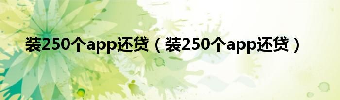 大家好,雨雨来为大家解答以上问题,装250个app还贷,装250个app还贷很多人还不知道,现在让我们一起来看看吧!