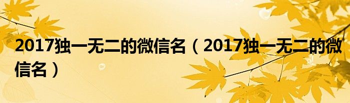 大家好,雨雨来为大家解答以上问题,2017独一无二的微信名,2017独一无二的微信名很多人还不知道,现在让我们一起来看看吧!