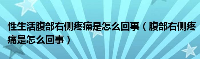 大家好,linda来为大家解答以上的问题。性生活腹部右侧疼痛是怎么回事,腹部右侧疼痛是怎么回事很多人还不知道,现在让我们一起来看看吧!