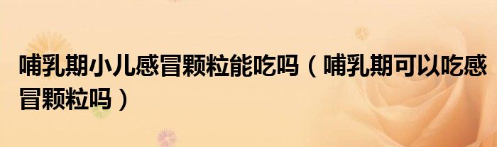 大家好,linda来为大家解答以上的问题。哺乳期小儿感冒颗粒能吃吗,哺乳期可以吃感冒颗粒吗很多人还不知道,现在让我们一起来看看吧!