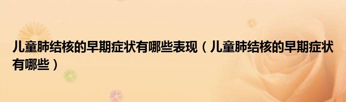 大家好,linda来为大家解答以上的问题。儿童肺结核的早期症状有哪些表现,儿童肺结核的早期症状有哪些很多人还不知道,现在让我们一起来看看吧!