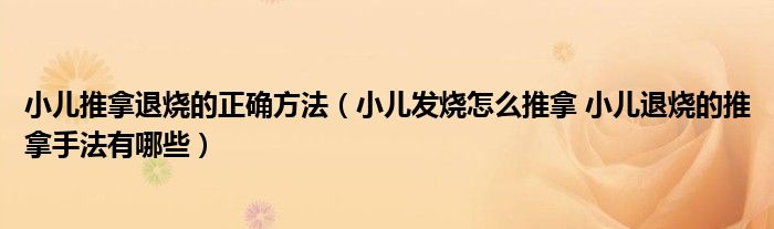 大家好,linda来为大家解答以上的问题。小儿推拿退烧的正确方法,小儿发烧怎么推拿 小儿退烧的推拿手法有哪些很多人还不知道,现在让我们一起来看看吧!