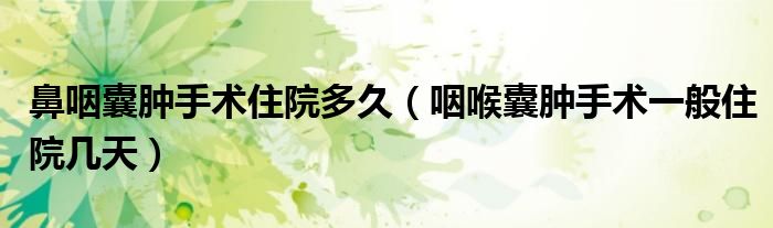 1、喉囊肿,最常见的是会厌囊肿。咽喉手术的麻醉方式是全身麻醉,所以手术必须住院。一般住院时间在7天左右。