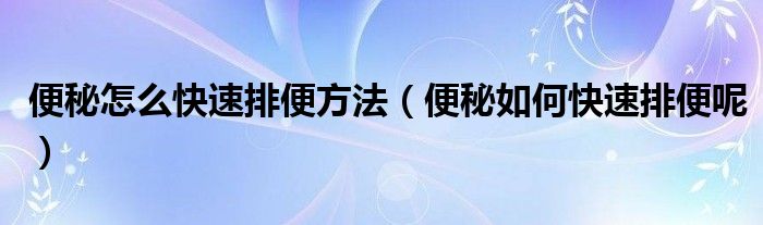 便秘怎么快速排便方法(便秘如何快速排便呢)