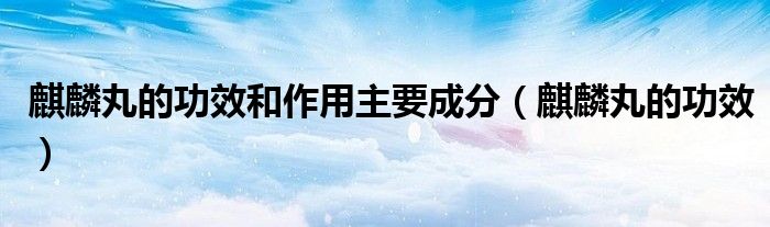 麒麟丸的功效和作用主要成分(麒麟丸的功效)