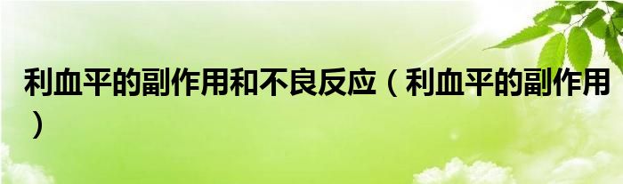 利血平的副作用和不良反应(利血平的副作用)