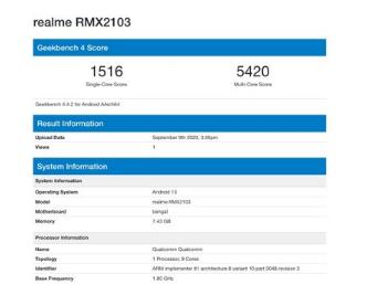 在Geekbench上的出现确认了Qualcomm Snapdragon 662处理器和8GB RAM的存在。尽管到目前为止尚未确认,但可能还有其他可用的内存选项。与以前的情况一样,这些测试最终没有确认更多细节,除了处理器,RAM和操作系统(在本例中为Android 10)之外。
