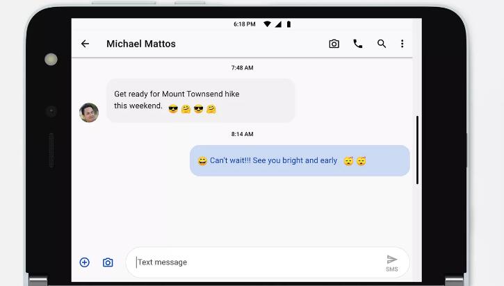 由于选择了两个独立的显示屏,因此任何Android应用程序都可以在Duo上运行而无需修改。Panay说:“任何应用都必须运行。”从一开始就支持所有Android显然很重要。开发人员还可以优化其应用程序的布局,以真正利用这两个显示并跨越它们。微软已经调整了自己的应用程序,例如Office套件和OneDrive,以跨屏显示,而像亚马逊这样的第三方也已经在Kindle应用程序上进行了工作,通过在两个屏幕上滑动页面来使您感觉就像在读书。