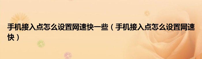 大家好,小晋来为大家解答以下问题,关于手机接入点怎么设置网速快一些,手机接入点怎么设置网速快很多人还不知道,今天让我们一起来看看吧!