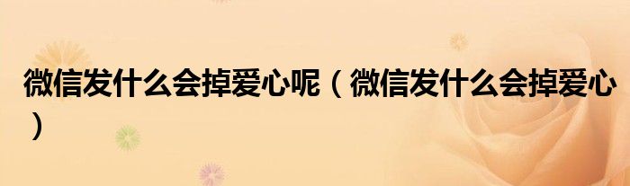 大家好,小晋来为大家解答以下问题,关于微信发什么会掉爱心呢,微信发什么会掉爱心很多人还不知道,今天让我们一起来看看吧!