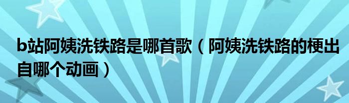 大家好,小晋来为大家解答以下问题,关于b站阿姨洗铁路是哪首歌,阿姨洗铁路的梗出自哪个动画很多人还不知道,今天让我们一起来看看吧!