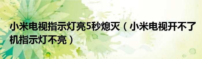 大家好,小叶为你解答以上问题。小米电视指示灯亮5秒熄灭,小米电视开不了机指示灯不亮这个问题很多人还不知道,现在让我们一起来看看吧!