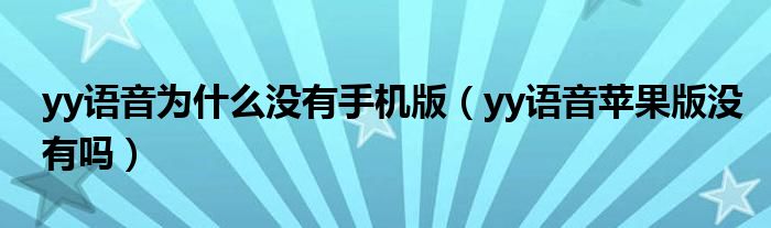 大家好,跳跳为你解答以上问题。yy语音为什么没有手机版,yy语音苹果版没有吗这个问题很多人还不知道,现在让我们一起来看看吧!
