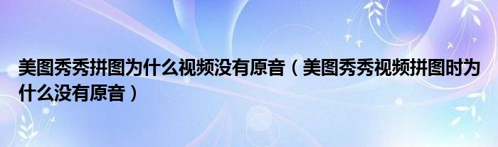 大家好,跳跳为你解答以上问题。美图秀秀拼图为什么视频没有原音,美图秀秀视频拼图时为什么没有原音这个问题很多人还不知道,现在让我们一起来看看吧!