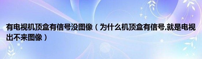 大家好,小叶为你解答以上问题。有电视机顶盒有信号没图像,为什么机顶盒有信号,就是电视出不来图像这个问题很多人还不知道,现在让我们一起来看看吧!