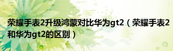 大家好,小叶为你解答以上问题。荣耀手表2升级鸿蒙对比华为gt2,荣耀手表2和华为gt2的区别这个问题很多人还不知道,现在让我们一起来看看吧!