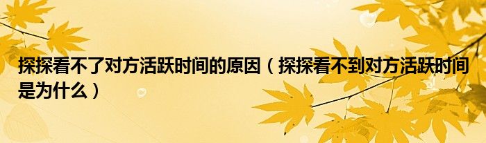 探探看不了对方活跃时间的原因(探探看不到对方活跃时间是为什么)