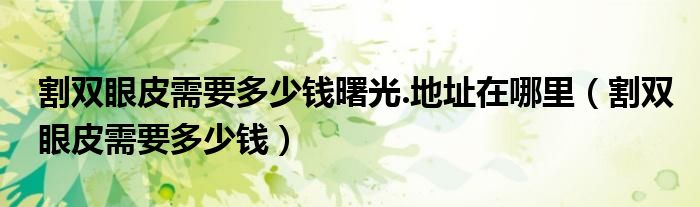大家好,linda来为大家解答以上的问题。割双眼皮需要多少钱曙光.地址在哪里,割双眼皮需要多少钱很多人还不知道,现在让我们一起来看看吧!