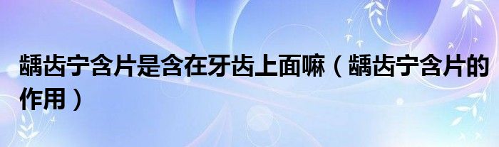 大家好,linda来为大家解答以上的问题。龋齿宁含片是含在牙齿上面嘛,龋齿宁含片的作用很多人还不知道,现在让我们一起来看看吧!