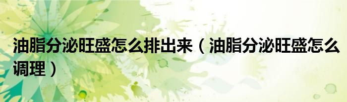 大家好,linda来为大家解答以上的问题。油脂分泌旺盛怎么排出来,油脂分泌旺盛怎么调理很多人还不知道,现在让我们一起来看看吧!