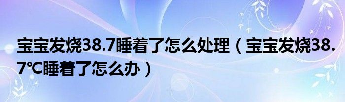 大家好,linda来为大家解答以上的问题。宝宝发烧38.7睡着了怎么处理,宝宝发烧38.7℃睡着了怎么办很多人还不知道,现在让我们一起来看看吧!